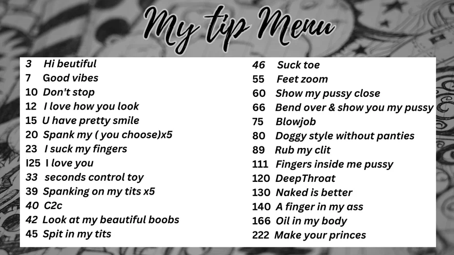 Spanking, Striptease, Twerk, Doggy Style, Erotic Dance, Camel Toe, Creampie, Topless, Oil Show, Tittyfuck, Blowjob, Fingering, Orgasm, Masturbation, Sex Toys